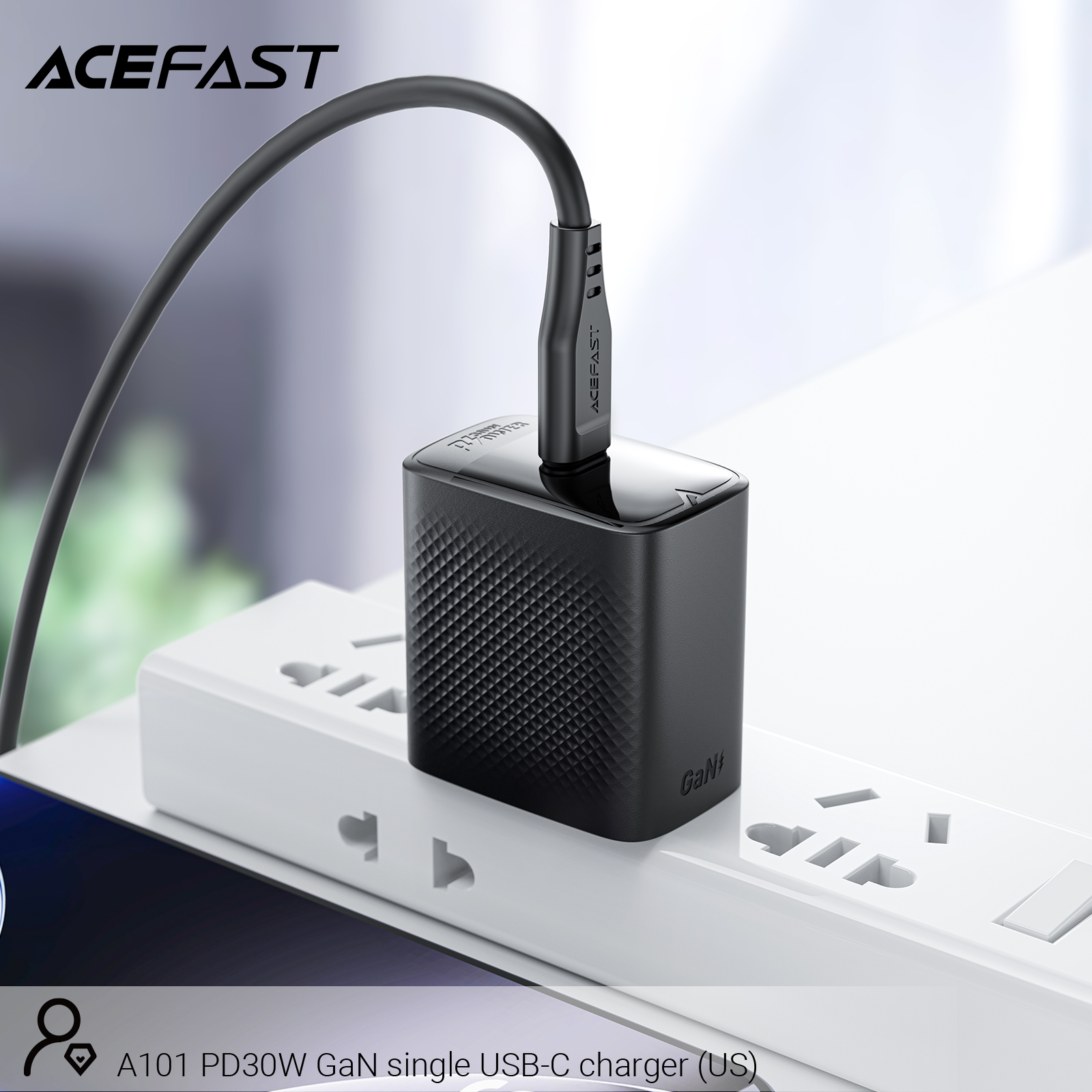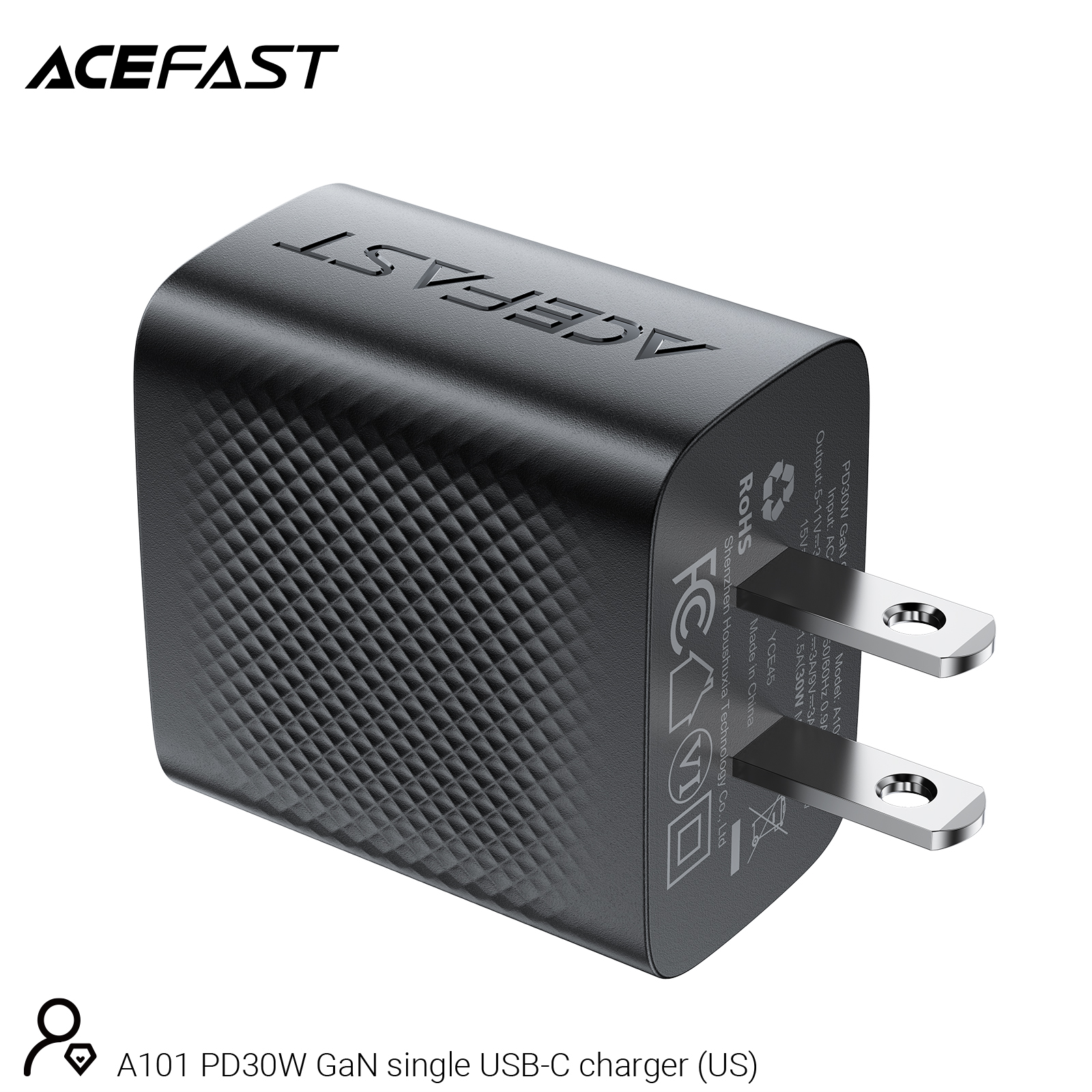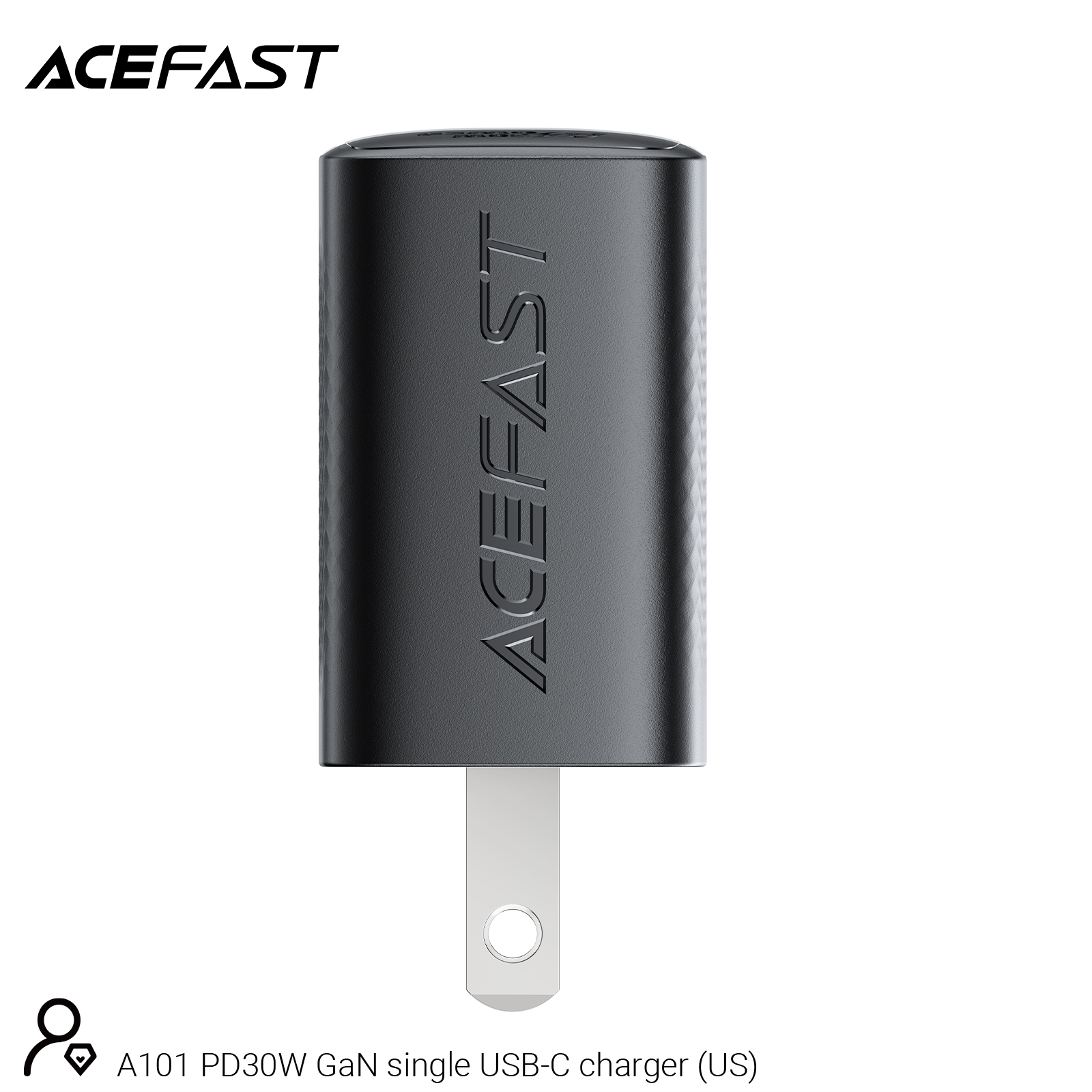 The ACEFAST A101 PD30W GaN USB-C Fast Charger delivers efficient and fast charging with a 30W output. Designed with GaN technology, it ensures reliable power delivery for modern devices. The sleek black design is perfect for any setup, and the charger is specifically made for the US market for optimal compatibility.