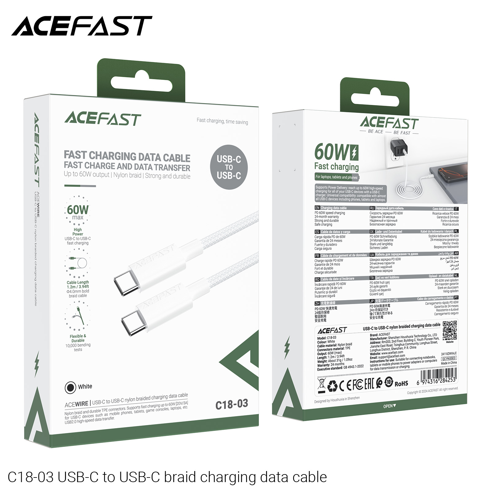 The ACEFAST C18-03 USB-C to USB-C Braid Charging Data Cable ensures seamless connectivity. It supports both charging and data transfer, keeping your devices powered and connected. The braid design adds durability, making it suitable for everyday use. Ideal for users seeking a reliable cable for their USB-C devices.